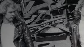 Utställningsposter för filmen om Club Zebra. På bilden ses Sex Pistols basist, Sid Vicious utanför Kristinehamns Stadshotell sommaren 1977. I bakgrunden skymtas huset där utställningen senare ägde rum 38 år senare.